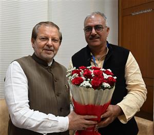 चंडीगढ़ : राज्यसभा चुनाव 2026 में विजयी हुए भाजपा प्रत्याशी संजय भाटिया को पुष्पगुच्छ देकर बधाई देते हुए सहकारिता मंत्री डॉ अरविंद शर्मा।