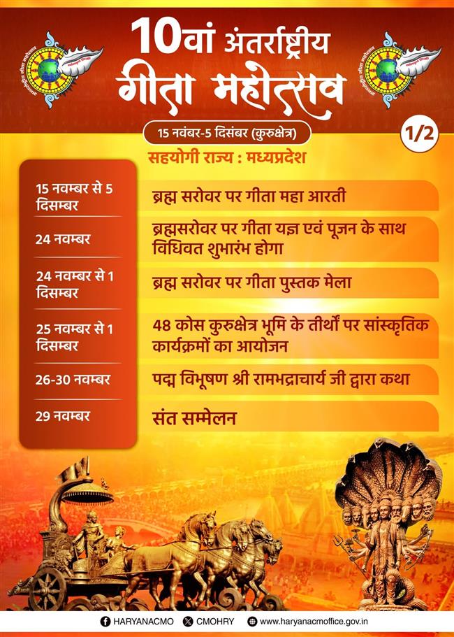 अंतर्राष्ट्रीय गीता महोत्सव 15 नवंबर से 5 दिसंबर 2025 तक चलेगा:नायब सैनी, हरियाणा के मुख्यमंत्री