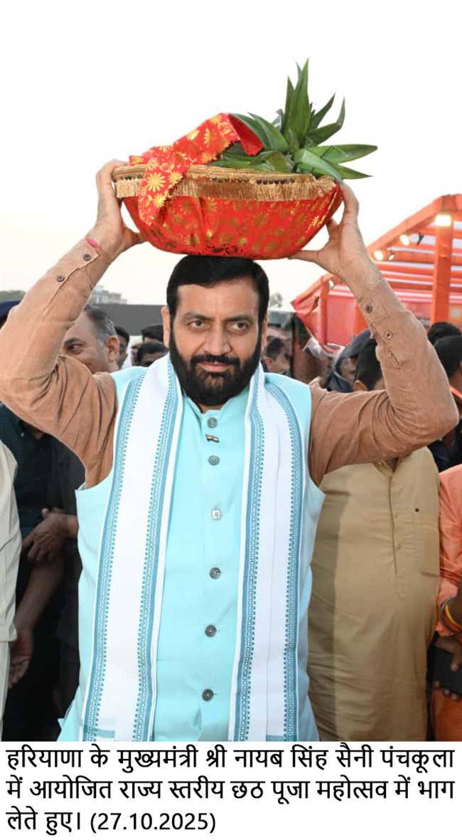 हरियाणा के मुख्यमंत्री श्री नायब सिंह सैनी ने कहा कि छठ पर्व भारतीय संस्कृति का सेतु ही नहीं बल्कि देश के हर क्षेत्र को आस्था के धागे से जोड़ता है। साथ ही यह समानता की अद्भुत मिसाल भी है और हमारी संस्कृति व आस्था का प्रकृति से कितना गहरा जुड़ाव भी है।