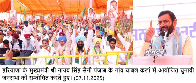 हरियाणा के मुख्यमंत्री श्री नायब सिंह सैनी ने शुक्रवार को पंजाब के तरनतारन जिले के चाबल कलां में एक विशाल जनसभा को संबोधित करते हुए कहा कि पंजाब की जनता आम आदमी पार्टी के कुशासन से अब ऊब चुकी है और जनता अब विकास व सुशासन चाहती है। उन्होंने कहा कि यह कोई साधारण चुनाव नहीं है, बल्कि यह पंजाब की दिशा तय करने वाला चुनाव है कि आने वाले वर्षों में पंजाब कैसा होगा। इस बदलाव की गारंटी भारतीय जनता पार्टी और उसके प्रत्याशी श्री हरजीत सिंह संधू हैं।