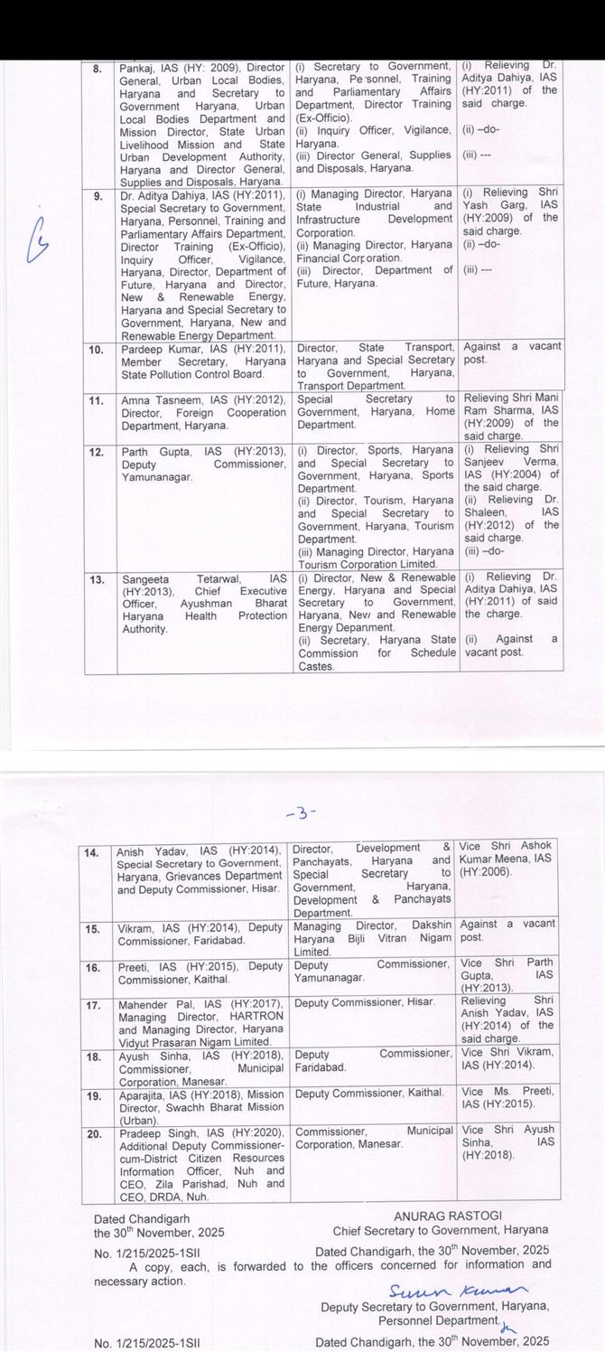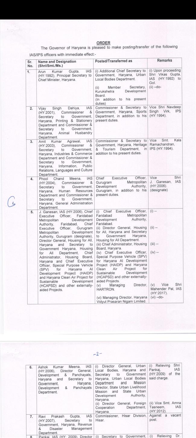 हरियाणा सरकार ने 20 आईएएस अधिकारियों का किया तबादला