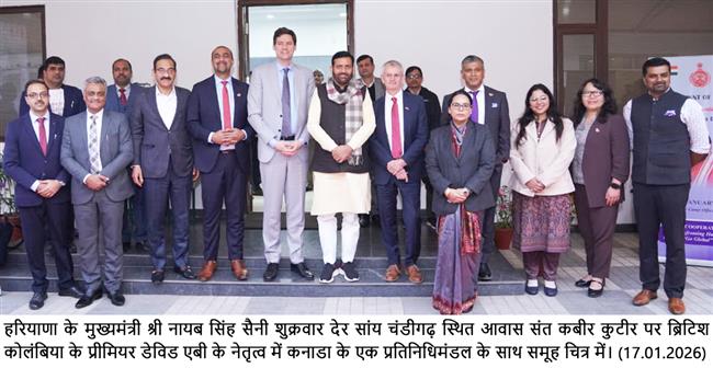 हरियाणा और कनाडा का ब्रिटिश कोलंबिया प्रांत अब साझा विकास के साझेदार बनेंगे। मुख्यमंत्री श्री नायब सिंह सैनी से कनाडा के ब्रिटिश कोलंबिया प्रांत के प्रीमियर श्री डेविड एबी के नेतृत्व में आए उच्चस्तरीय प्रतिनिधिमंडल ने शिष्टाचार भेंट कर विभिन्न क्षेत्रों में सहयोग करने को लेकर चर्चा की। इस मौके पर दोनों प्रांतों के बीच आर्थिक, औद्योगिक और तकनीकी सहयोग को नई दिशा देने के लिए क्लीन एनर्जी, टेक्नोलॉजी, लॉजिस्टिक्स, एग्री-फूड प्रोसेसिंग, स्किल डेवलपमेंट और शिक्षा जैसे प्रमुख क्षेत्रों में साझेदारी को मजबूत करने पर सहमति बनी।