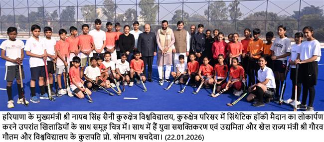 मुख्यमंत्री ने कहा कि सिंथेटिक हॉकी खेल मैदान से अब उभरते हुए हॉकी खिलाड़ियों को अपने कौशल को निखारने के लिए विश्वस्तरीय सुविधाएं प्राप्त होंगी। मुख्यमंत्री ने खिलाड़ियों का हौसला बढ़ाते हुए कहा कि हरियाणा सरकार खेलों को बढ़ावा देने और बुनियादी ढांचे को मजबूत करने के लिए प्रतिबद्ध है। मुख्यमंत्री ने विश्वविद्यालय अधिकारियों से बातचीत करते हुए कहा कि भारत सरकार की खेलो इंडिया योजना से राज्य के खिलाड़ी ओलंपिक और अंतरराष्ट्रीय मंचों पर और भी अधिक पदक जीतकर देश का नाम रोशन करेंगे। यह आयोजन न केवल बुनियादी ढांचे के विकास का प्रतीक रहा, बल्कि हरियाणा को देश का खेल हब बनाए रखने के संकल्प को भी दोहराया गया।