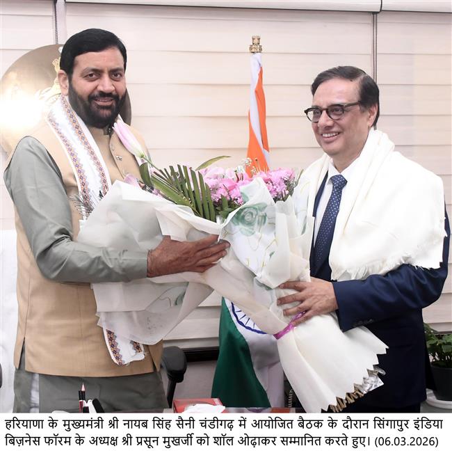 इस अवसर पर सिंगापुर इंडिया बिज़नेस फोरम के अध्यक्ष श्री प्रसून मुखर्जी ने मुख्यमंत्री श्री नायब सिंह सैनी को सिंगापुर आने का आमंत्रण दिया। श्री मुखर्जी ने कहा कि सिंगापुर इंडिया बिज़नेस फोरम के निवेशक सिंगापुर सरकार के साथ मिलकर हरियाणा में निवेश के अवसरों को लेकर काफी उत्साहित हैं और भविष्य में विभिन्न क्षेत्रों में सहयोग की व्यापक संभावनाएं हैं।