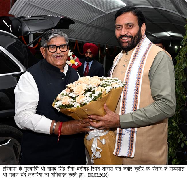 पंजाब के महामहिम राज्यपाल गुलाबचंद कटारिया से मिले मुख्यमंत्री नायब सिंह सैनी, संत कबीर कुटीर पहुंचने पर मुख्यमंत्री ने किया महामहिम का स्वागत एवं अभिनंदन