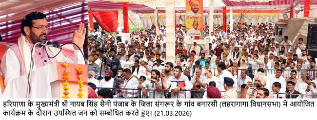 हरियाणा के मुख्यमंत्री श्री नायब सिंह सैनी शनिवार को पंजाब के लहरागागा के गांव बनारसी में युवा नेता राकेश सिंह गिल द्वारा आयोजित जनसभा को संबोधित कर रहे थे। इस जनसभा में राकेश सिंह गिल ने अपने समर्थकों सहित मुख्यमंत्री की मौजूदगी में भाजपा का दामन थामा।