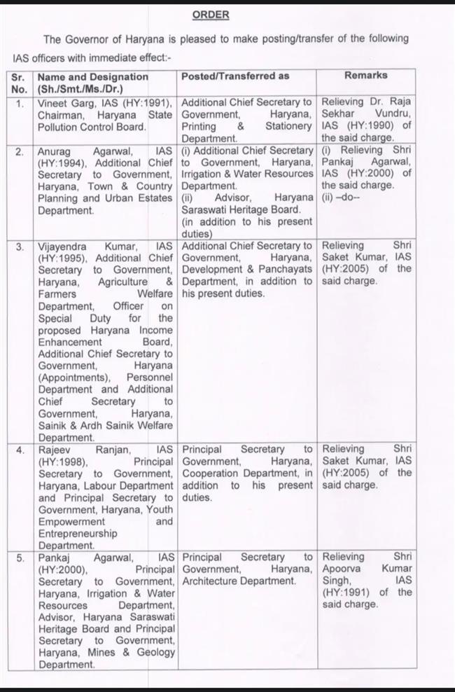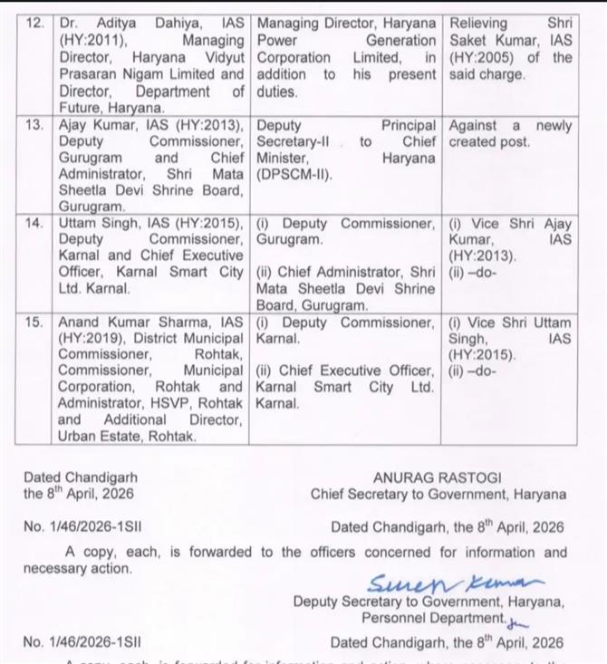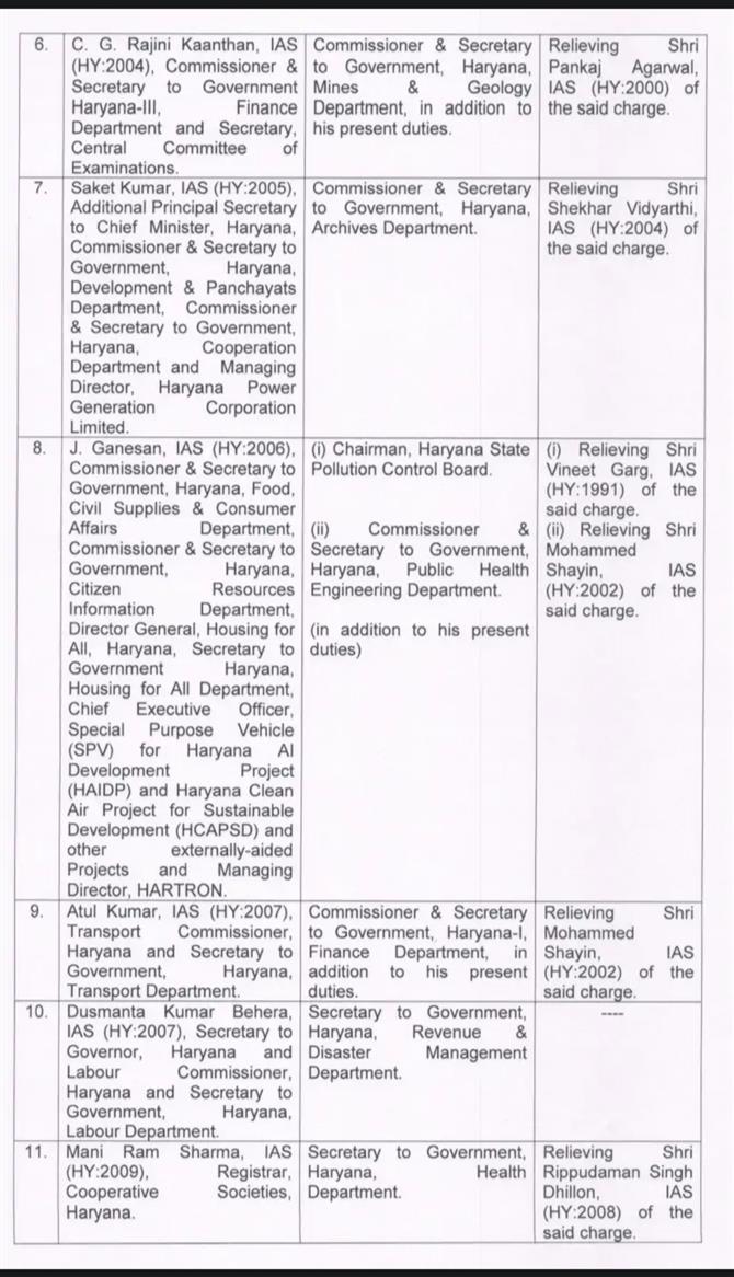 हरियाणा के मुख्यमंत्री कार्यालय में बड़ा फेरबदल,मुख्यमंत्री ने अपने अतिरिक्त प्रधान सचिव साकेत कुमार को हटाया और अजय कुमार को उप प्रधान सचिव बनाया,उत्तम सिंह होंगे गुरुग्राम के नए डीसी, अजय कुमार सीएम के डिप्टी प्रिंसिपल सेक्रेटरी बनाए गए